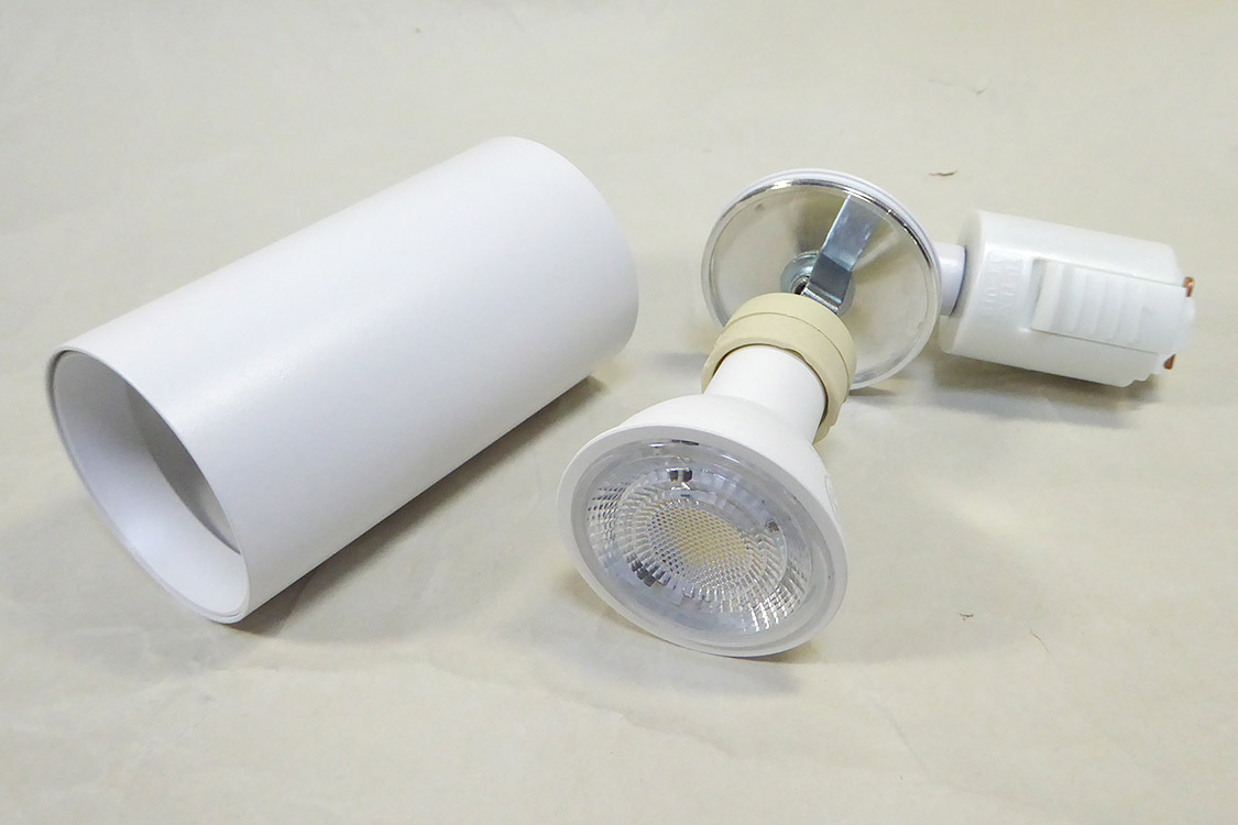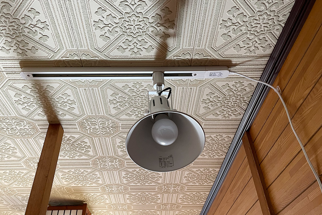 最初は今までと同じようにセンサー式のライトを設置することにした。ぶら下げる器具はオーム電機の「ダクトレール用スポットライト ORL-SE26M-W」。