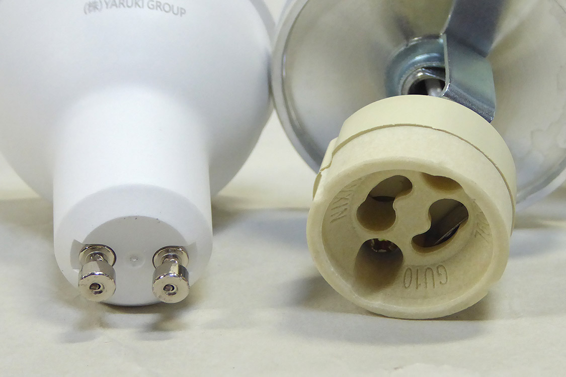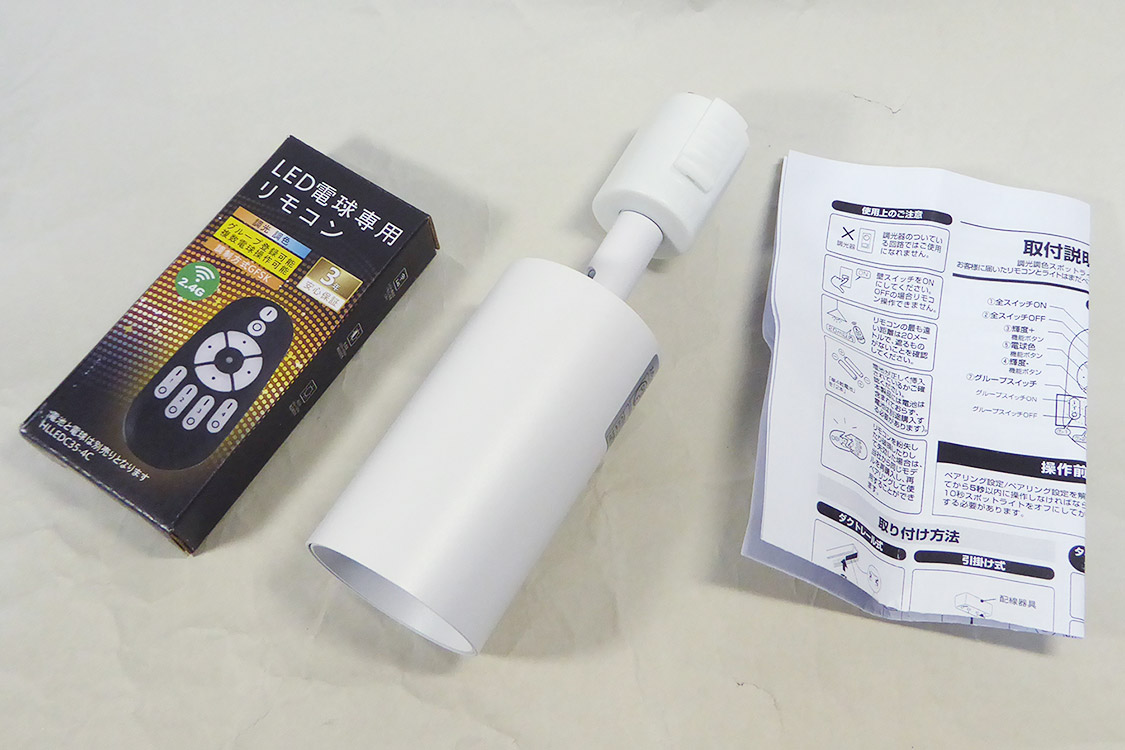 電球のソケットはGU10口金。交換するLED電球は調光調色機能付きでなくてはならないが、リモコンと対応するかは不明。