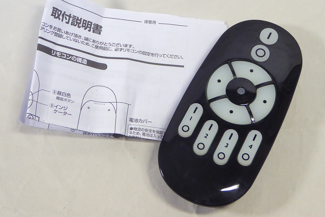 ライトは60W形だがリモコンにより調光調色を可変できる。常夜灯モードもあるらしいので注文してみた。