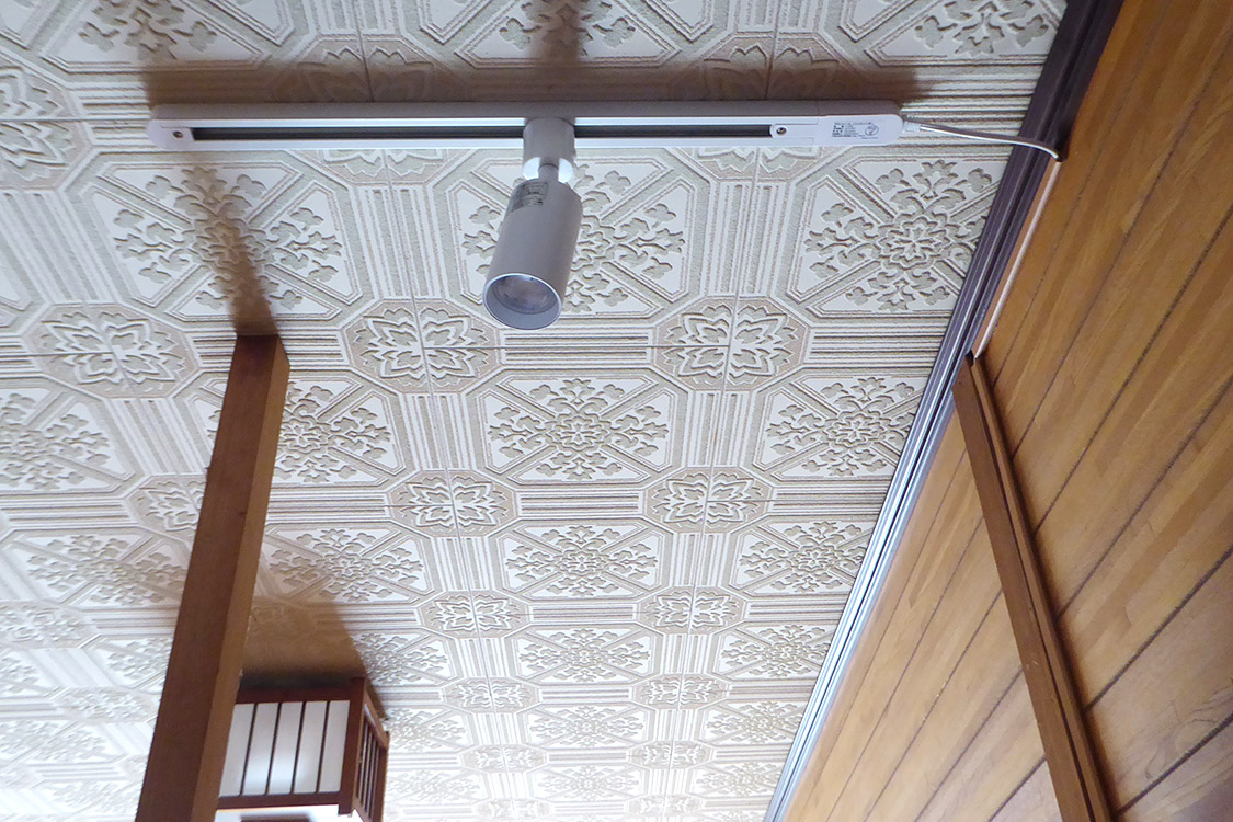 とりあえず、トイレと廊下に設置したセンサーライトの付近にはACコンセントがあったので、天井にダクトレールを取り付けてAC化することにした。