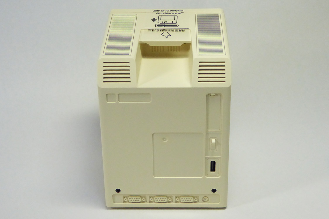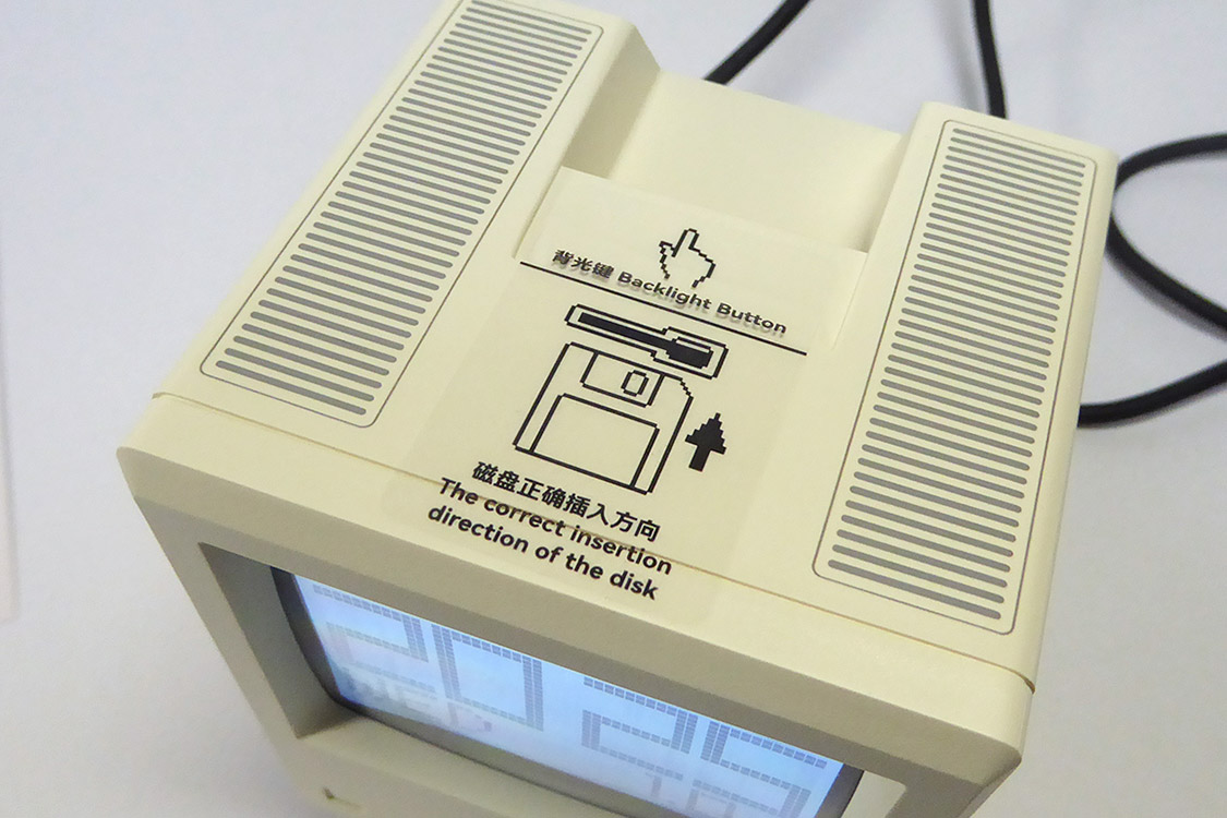 付属のフロッピーディスクを挿入するとピピッと鳴って電源が入り、画面を表示する。フロッピーディスクを抜くと電源オフ。