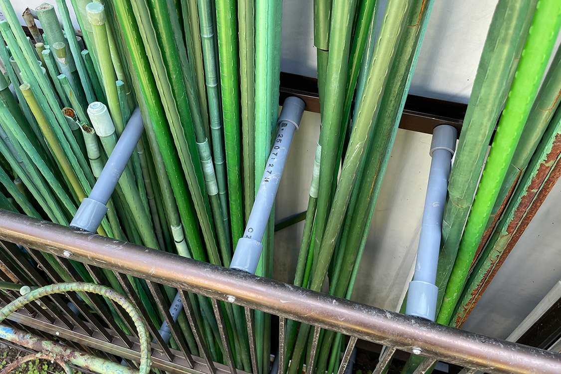 外枠と内扉を塩ビ管で連結して、イボ竹の長さで分類できるようにした。