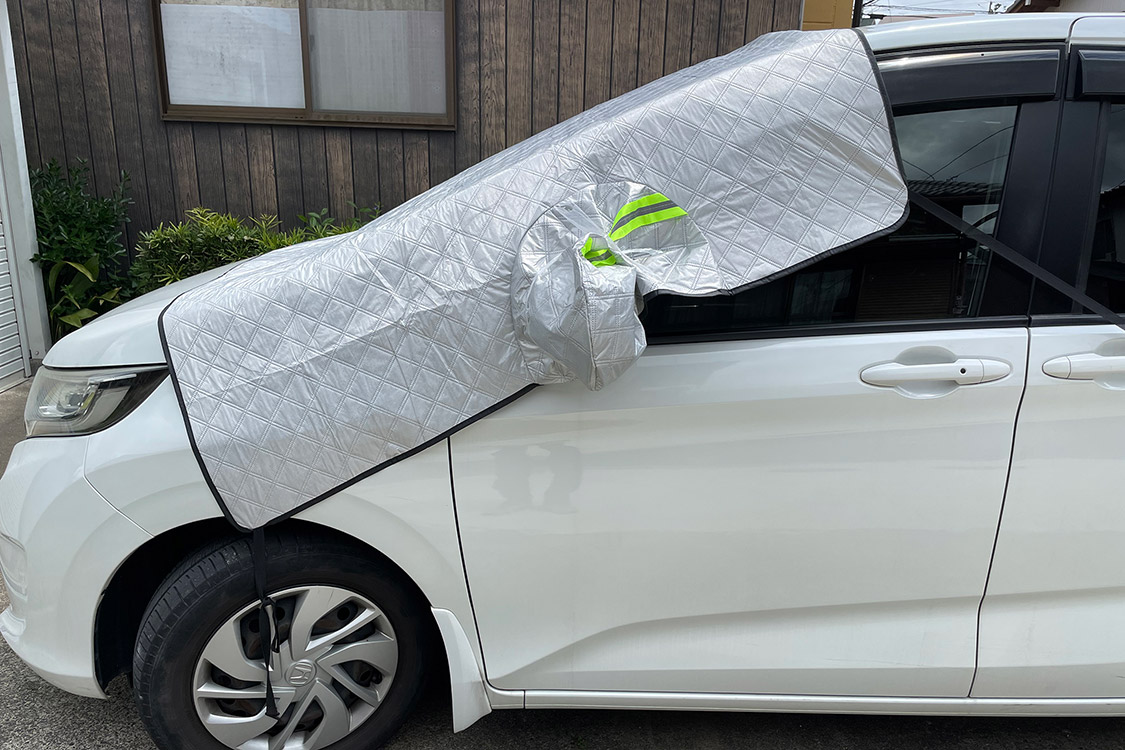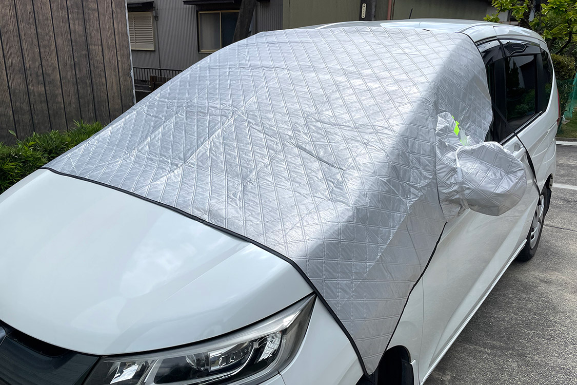 このカバーは黄砂だけじゃなくて、雪や霜、凍結を防止、落ち葉などから守ってくれる。